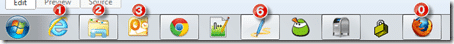 - Windows + (#) –> Launches the first 10 applications in your taskbar. First, the “#” symbol stands for an actual number. The number is tied to the order of applications in your taskbar. So, if Internet Explorer is the first application in your taskbar (next to the Start button), then clicking Windows + 1 (the one key) will launch IE. In the picture below, Windows + 6 will launch Windows Live Writer.