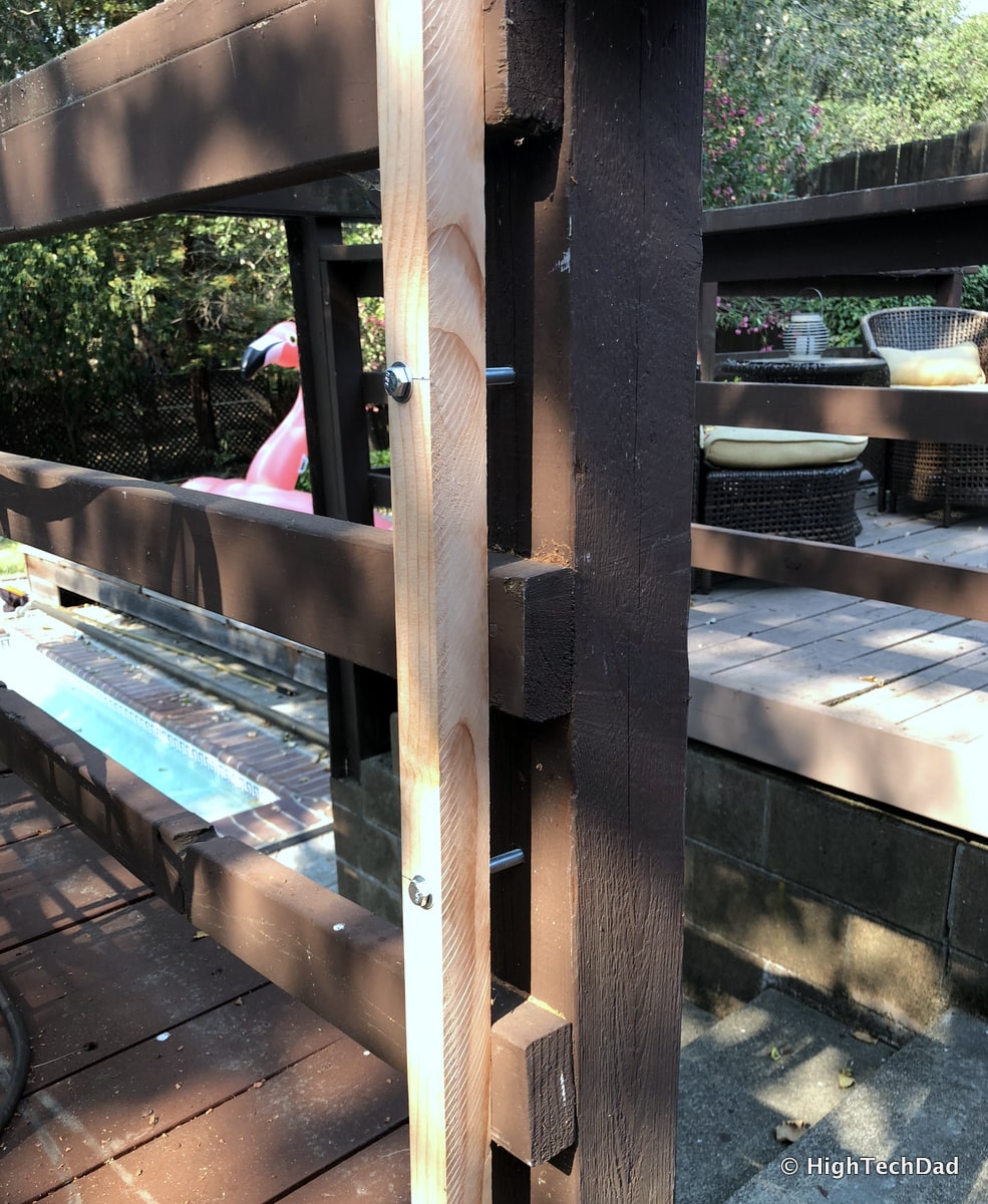 Before you start “doing,” take some time to assess your environment. As I mentioned, I took at least a week to think about the design and implementation. One significant requirement is that you have some 4×4 posts as part of a deck railing. And I even bought the materials for one post to be sure my design was somewhat sound. In our backyard, we have a few massive decks. And luckily, there were 4×4 posts surrounding much of the deck space where I wanted to have the lighting. The 4×4’s were critical to the success of the lighting posts. If you don’t have that option, this design might not work for you, and you may have to follow that pot method I described earlier.