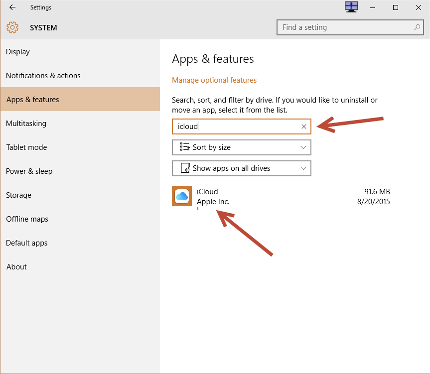 - Fully uninstall iCloud app. To uninstall an app, go to the Start Menu, select Settings, then type “uninstall” and select the “Add or Remove Programs.”