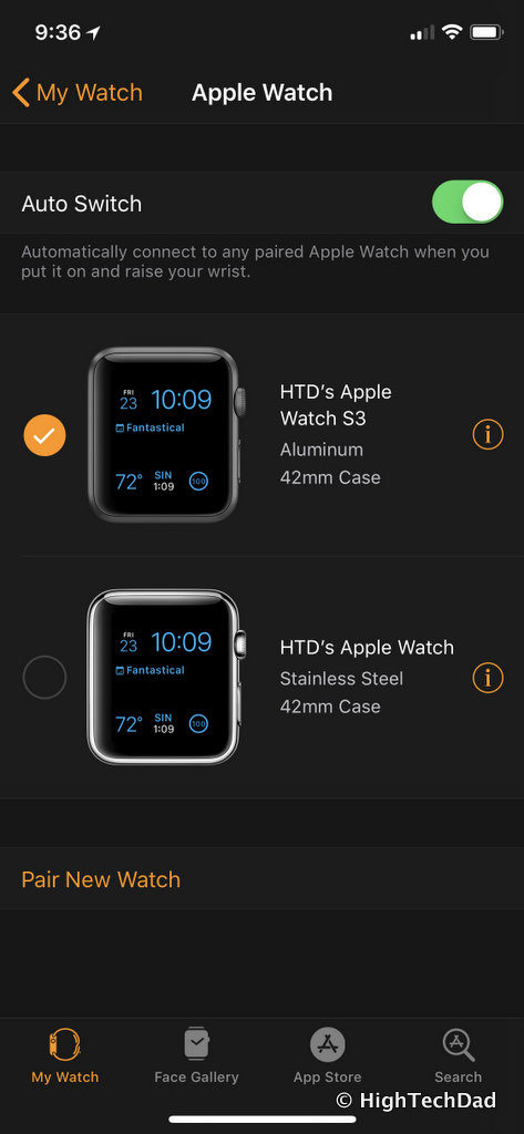 To make things even nicer, if you turn on the “Auto Switch” function, your iPhone will automatically detect which Watch you are actively using. It’s just one last thing to worry about. You can also manually switch to the Watch of your choosing within the Apple Watch app on your iPhone.