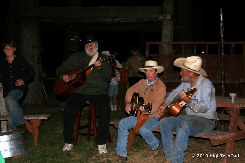 There were other activities as well including covered wagon rides to a BBQ/Picnic point in the hills. We actually did this twice. The second time around, there were two wagons, one for kids and one for adults, and for good reason too. Of course, those who wanted to ride horses up to the picnic area could do so as well. On the way up, the kid wagon sang songs and had Otter Pops as refreshment (it was warm that day). And on the adult wagon, we played Texas Hold’em Poker, but in a unique way, each player received a card at various horse resting stops. Cards would be used later to see the winning hand at the campfire during the bullfrog races.