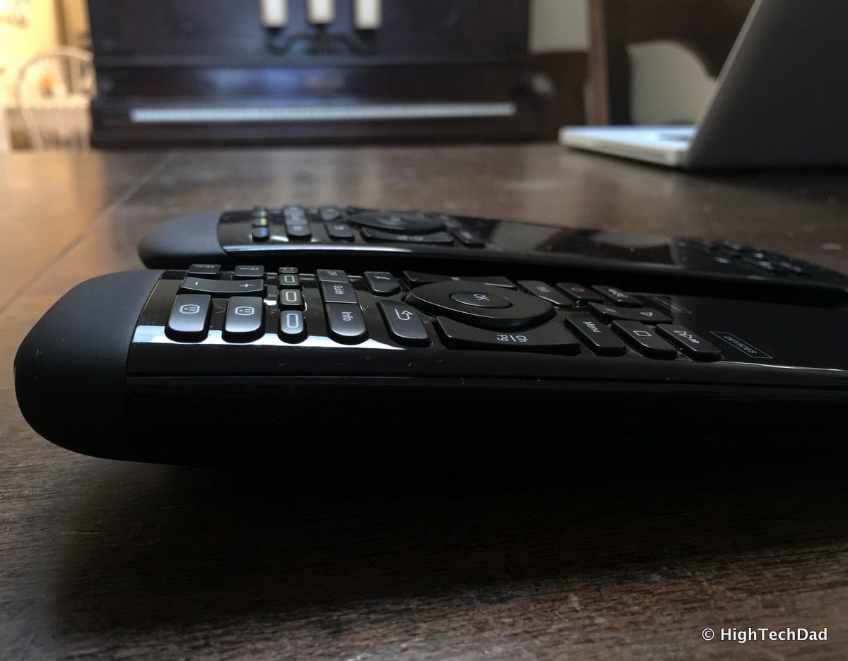 The side profile shows further refinement as well but the size is relatively the same. The Logitech Harmony Elite is in the front.