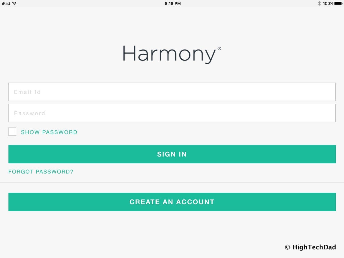 Then you will want to either create a Logitech Harmony account (which stores all of your settings in the cloud) or log in to an existing one. I logged into my existing account.