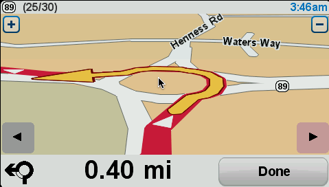 And here is the same view but using the night colors. The TomTom can automatically switch to night colors based on the Time of Day: