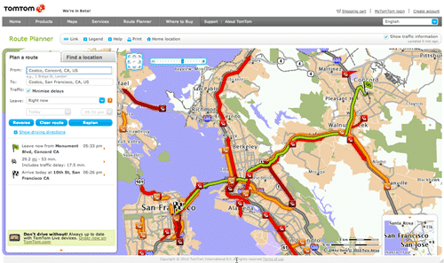 One nifty little feature that can be quite helpful is the Route Planner which is essentially a mapping service online. You visit the TomTom site and enter in a location or a trip and you see a map of your route. One thing that you do have is a very nice graphical representation of the real-time traffic in the area. Also, if you are planning a lengthy trip, you can enter in a number of destinations or stops along the way and actually transfer those directly to your TomTom GPS. This makes advanced planning and setup a snap.