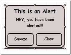 Once you have an object on your canvas, you double click it to edit variables related to it. For example, below I have an “alert box” in the edit mode. It comes pre-populated with text to give you some guidance (which I customized below).