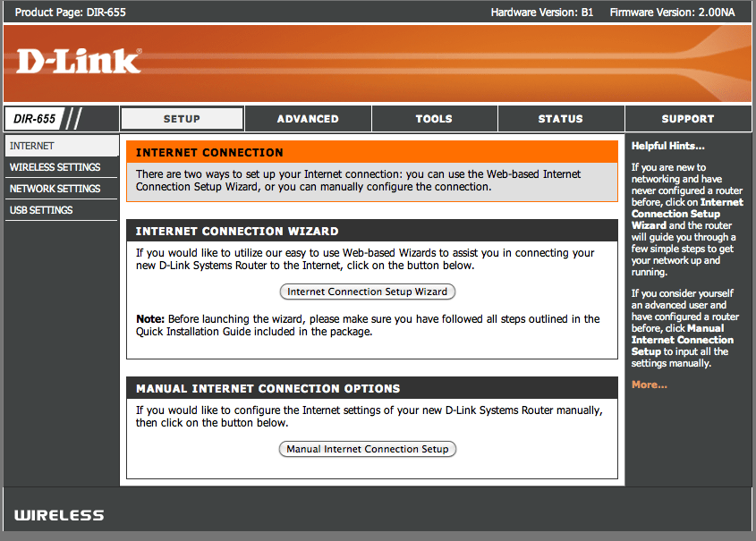 - Internet – to set up your DSL or cable modem setting, wizard and manual