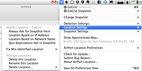 It’s called AirPort Location, and the premise is this. It runs in the background (requiring AirPort WiFi to be on an enabled). Once it detects a WiFi “fingerprint” (essentially, either one particular WiFi ID or a series of detected WiFi IDs or some other environmental variables) it then automatically configures your Mac environment (based on however you set it up in the application) to that environment. For example, at home, you may have a certain default printer, want your Mac to automatically attach to a networked storage device, want you screen to be a particular brightness, and certain apps to be launched. When AirPort Location detects your home WiFi, it will set up your environment that way. Then, when you go to work, once AirPort Location detects THAT WiFi environment, it changes your Mac to meet THOSE settings.