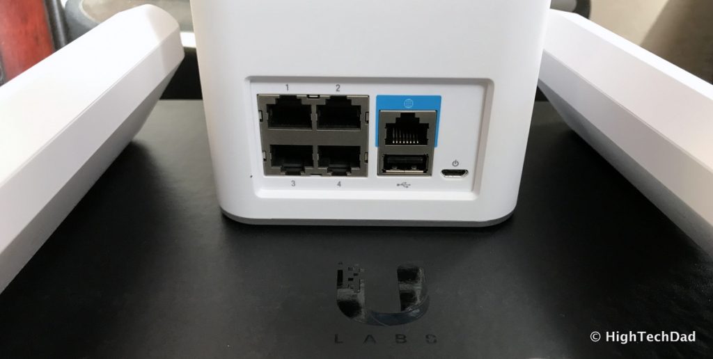 The back of the AmpliFi HD is equally as simple. There are 4 Ethernet ports for your LAN and a single WAN port (to connect to your router). These are Gigabit Ethernet ports too. There is also a USB port which is currently not active but I’m guessing that in the future, it could be connected to a printer or hard drive for sharing purposes. There is also a power port.