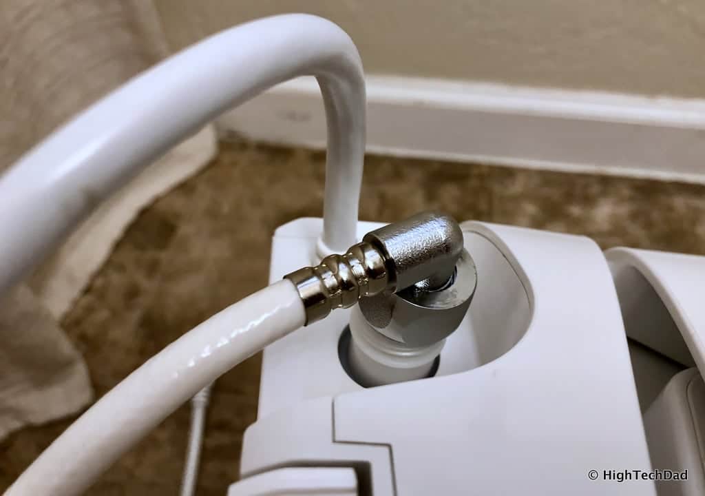 My GFCI plug was not close enough for the Omigo’s electrical cord to reach, so I bought a 3-prong extension cord rated for a minimum of 15 amps. A quick note here as I did some additional research about cords for bathroom use. Do NOT get a surge protector! The GFCI plug is all that you need to shut off power instantly. If you use a surge protector, you may actually NOT be protecting the environment. Just get a plain old medium-rated extension cord.
