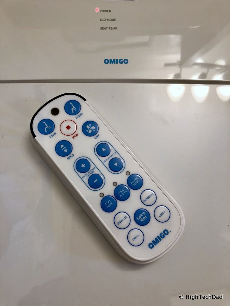 I can pretty much guarantee that the Omigo toilet seat remote is NOT going to get lost (it might get dropped into the toilet though – that hasn’t happened, yet). The remote itself is very nicely laid out. Buttons are clearly marked, and you can control each and every function direction from it.