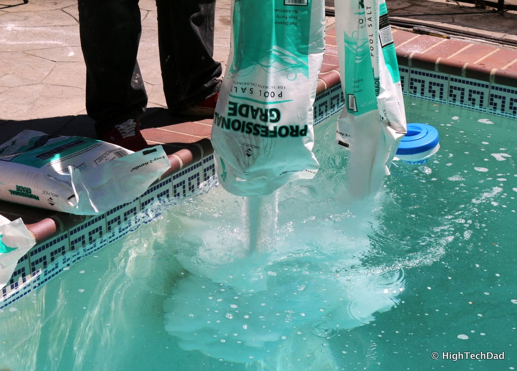 - Hundreds of pounds of pool salt were dumped into my pool for the initial saltwater chlorination (more about that later).