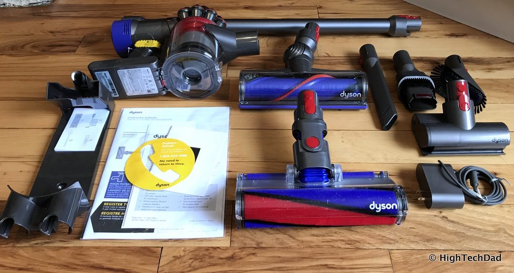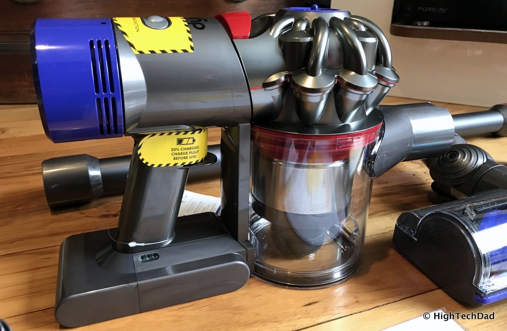 The Dyson V8 Absolute (on the right in the picture above) pretty much took all of the great features of the DC59 (on the left above) and improved upon them. It’s more powerful. The battery lasts longer. It’s quieter. It’s easier to clean. It’s easier to maneuver. It’s got a few more attachments. And the vacuuming power seems to be much stronger. But let’s not dwell on comparing to the past. The DC59 is great! But obviously, the V8 Absolute has made vacuuming even greater! Let’s dive a bit deeper into the Dyson V8 Absolute.