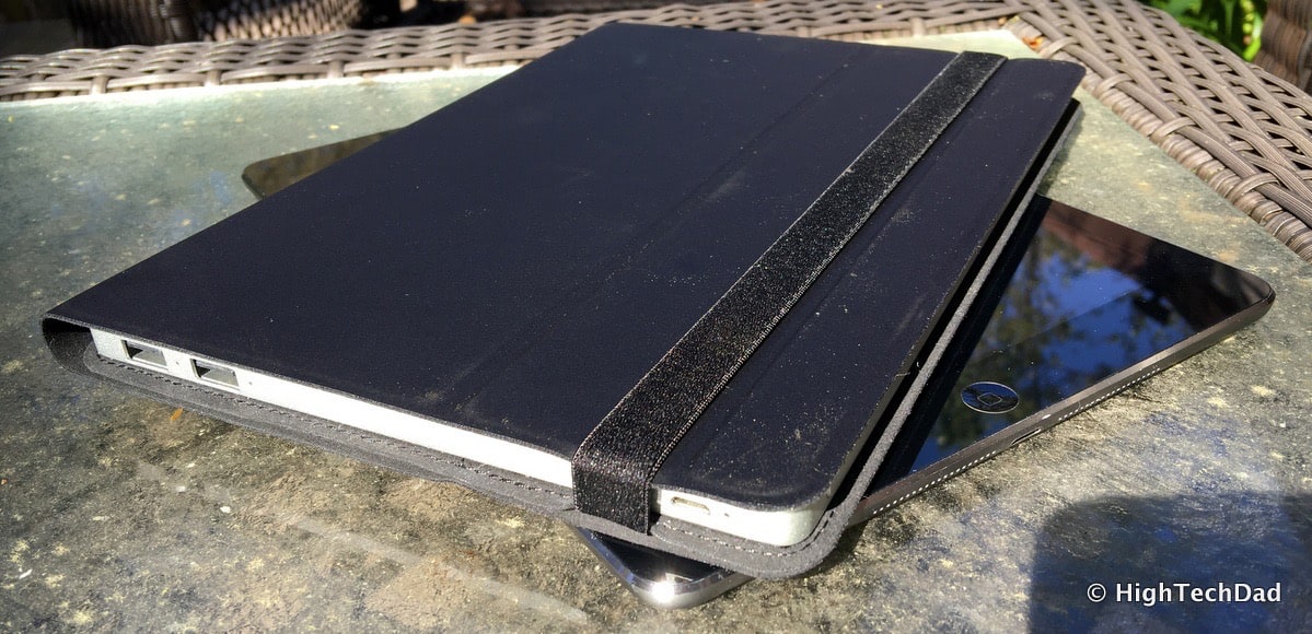 What jumps out at you about the Solartab is the form factor. It was designed to have pretty much the same physical footprint as a tablet (think an original iPad or iPad Air). It is 9.7” long by 7.6” wide by 0.35” thick. It has an integrated cover to protect the panel when it’s being carried. The cover also acts as a stand so that the solar panel can be angled in 3 ways to face the sun. When the cover is closed, the Solartab looks pretty much identical to a tablet in a case. And when the cover is closed, you still have access to all of the indicators and charging ports from the side. It weighs a bit over 2 pounds.