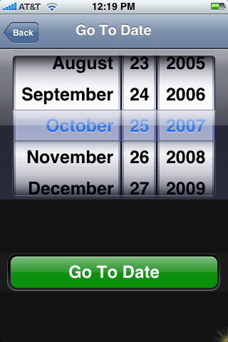Clicking Go To Date then closes Search and opens your Calendar application on that selected date. Years go back to the year “0” in the dialer, which, when clicking the “Go To Date” drops you in 2006 (1 year ago) if you are in the List view.