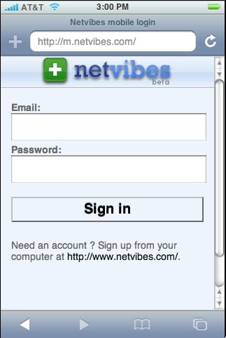 WOAH! I just reloaded my default home page and there is now a yellow message saying “Netvibes goes mobile! Now, you can check your Netvibes page on your mobile phone or your iPhone at the following address: http://m.netvibes.com” and of course I had to see how they implemented it. Well, the quick answer is, AMAZINGLY WELL! [Updated: they now have a post on their internal blog.]