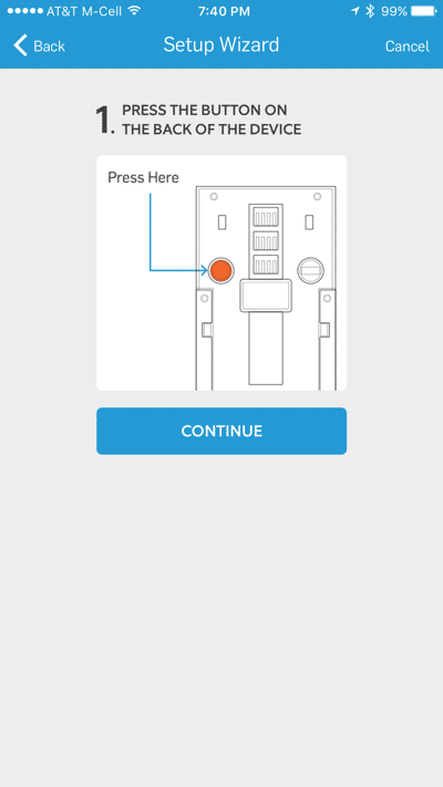 Then press the Setup button on the back (inside) the Ring doorbell.