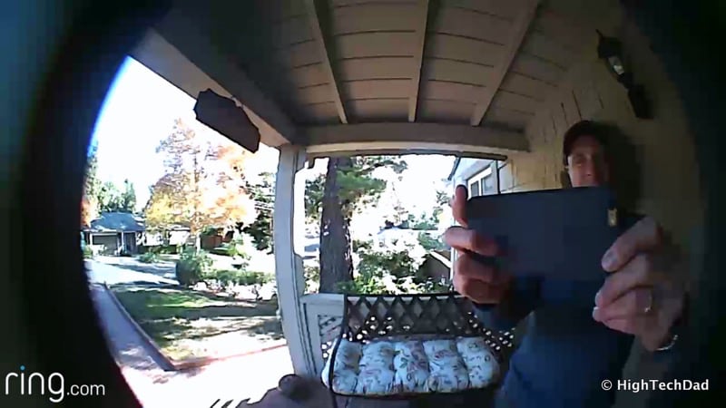 So, how does the Ring doorbell work? Basically when someone pushes the doorbell button, you are notified via a notification on your smartphone (as well as on the Ring Chime). Using your phone, you launch the Ring app and can accept or decline the doorbell ring. If you accept the ring, you can immediate start a two-way dialogue between you (on your smartphone or tablet) from anyway…yes, even around the world. You can later even view the video dialog (remember, the person at the door cannot see you, only hear you), via the app.